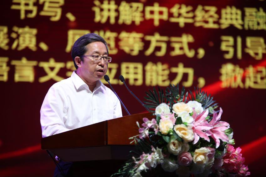 于春迟在致辞中表示,传承中华优秀传统文化、提炼展示中华文明的精神标识、推动中华文化更好地走向世界是党的二十大作出的战略部署。中华经典诵写讲大赛作为中华经典诵读工程的重要组成部分,是贯彻党的二十大精神的有益尝试,也是传承中华优秀传统文化的有益实践。习近平总书记在给世界全民阅读大会的贺信中指出,阅读是人类获取知识、启智增慧、培养道德的重要途径,可以让人得到思想启发,树立崇高理想,涵养浩然之气。为我们做好全民阅读工作提供了根本遵循,指明了前进方向。本届大赛在与阅读有机结合方面进行了创新,以“书香新时代,‘典’亮新征程”为主题,将在助力铸牢中华民族共同体,建设全民终身学习的学习型社会方面实现新的突破。期待吉林赛区按照总赛事的统一部署,在执行大赛系列制度的基础上,通过数字赋能大赛、畅通参赛路径、创新文宣途径等方式,坚持与时俱进的办赛理念,注重在比赛过程中展现出吉林赛区对中华经典的传承与创新。期待吉林赛区借助本省在经典传承兼艺术创作方面的良好传统与优势,充分调动大中小学以及各行业机构的参赛积极性,实现全方位、高质量办赛的目标。