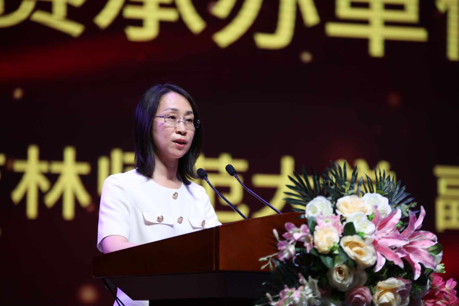 在缅怀革命先烈、致敬时代英雄的氛围中,长春市教育局副局长李大伟、延边州教育局副局长矫健鹰就两地在推进中华经典诵写讲活动、成功打造品牌赛事、营造大众读经典的浓厚氛围中所取得的宝贵经验进行了交流介绍。吉林师范大学副校长王菲菲、延边大学教务处副处长尹哲峰作为本届大赛吉林赛区承办高校代表,向大会汇报了赛前准备工作和赛事进展情况,对办好此次大赛作了郑重表态。吉林大学由兴波教授、东北师范大学孙立权教授以中国古典诗歌为例,强调了诵读经典对个人成长、社会发展、文化传承的重要作用,并分享了如何读好经典的经验和体会。
