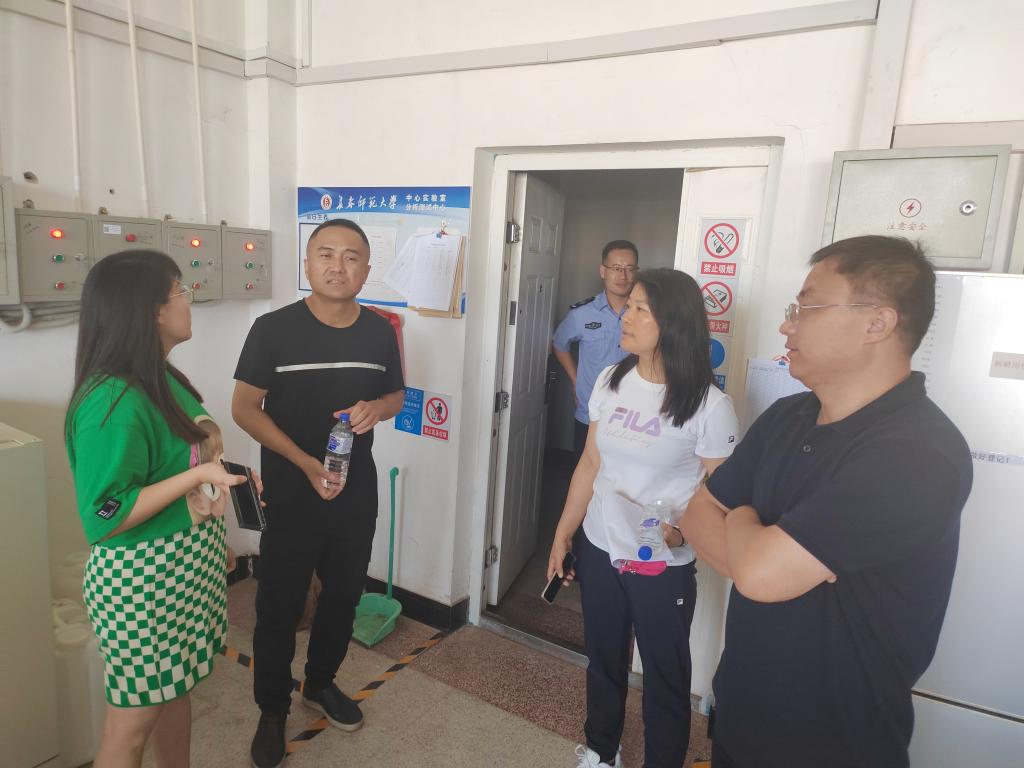 检查组深入化学学院、生命科学学院、物理学院、中心实验室、地理科学学院等单位实验室,重点对学生实验安全、消防安全、危险化学品安全等情况进行了实地查看,并与有关单位负责人及师生交流了解暑期实验室管理、使用情况,对存在的实验室安全隐患要求有效落实整改。整体来看,各单位高度重视暑期实验室安全管理,通过领导干部轮流值班、专人值班巡检等制度,多措并举保障实验室安全。