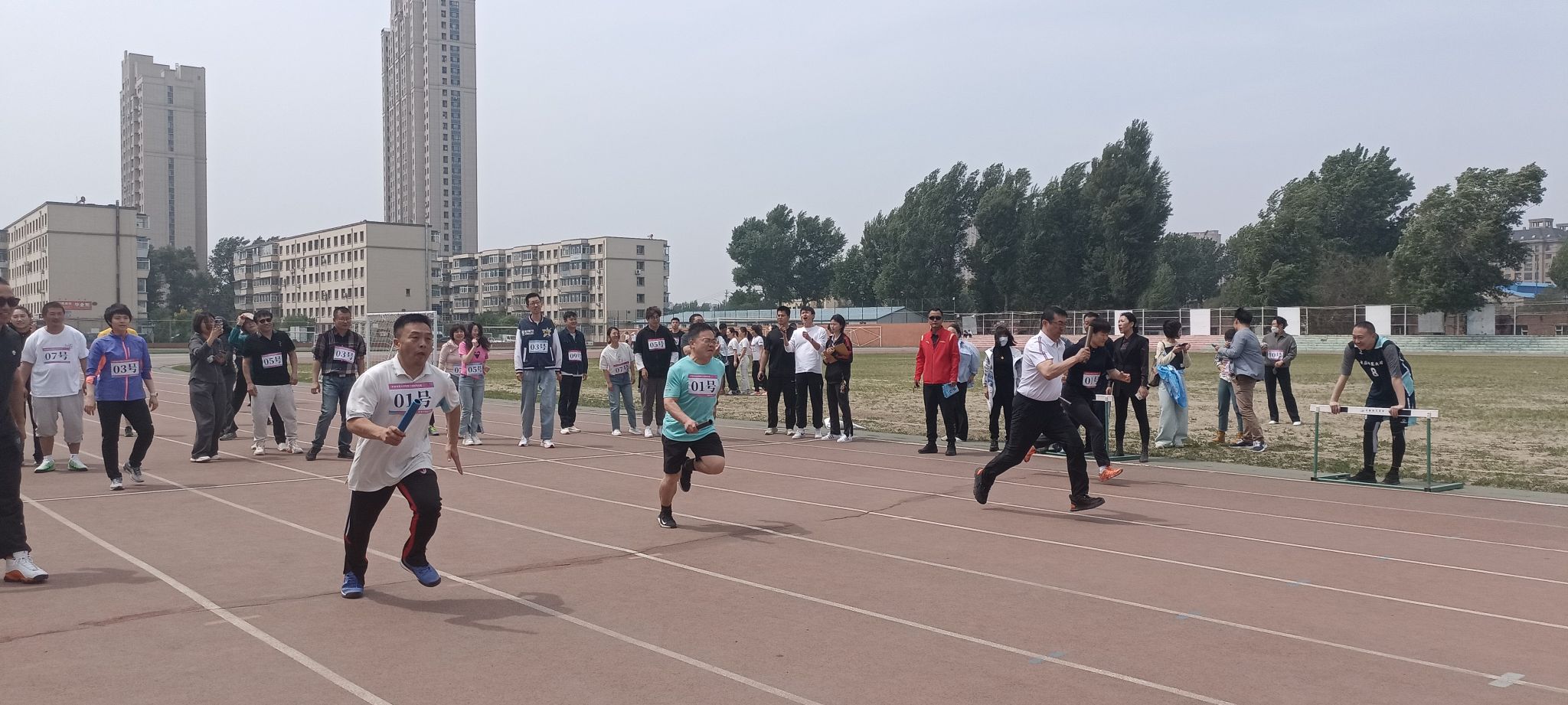 为深入贯彻落实全民健身计划,丰富教职工的业余生活,提高教职工的健康水平,激发教职工参加体育锻炼的积极性,增强团队协作意识,522日中午,学校在体育场举办教职工50米迎面接力跑比赛活动, 25个基层分工会300余名教职工参加活动。