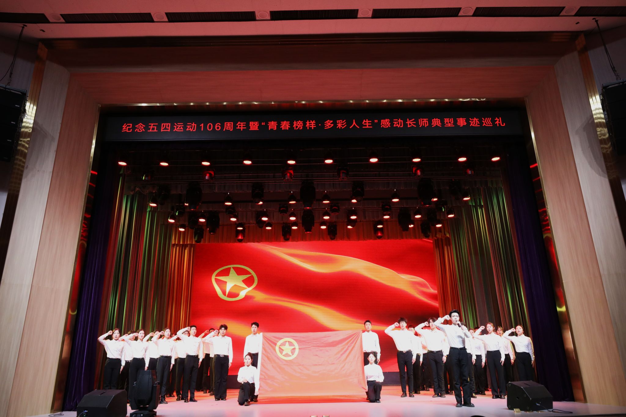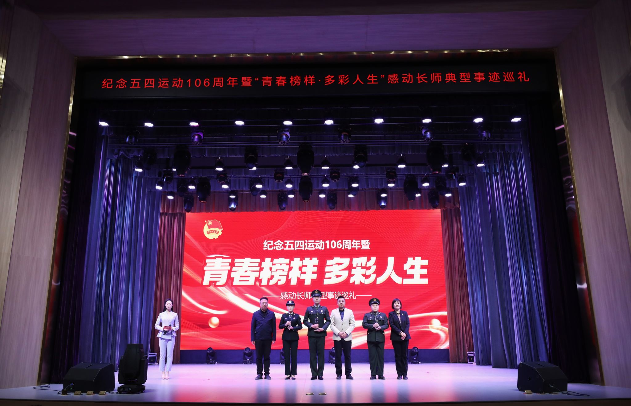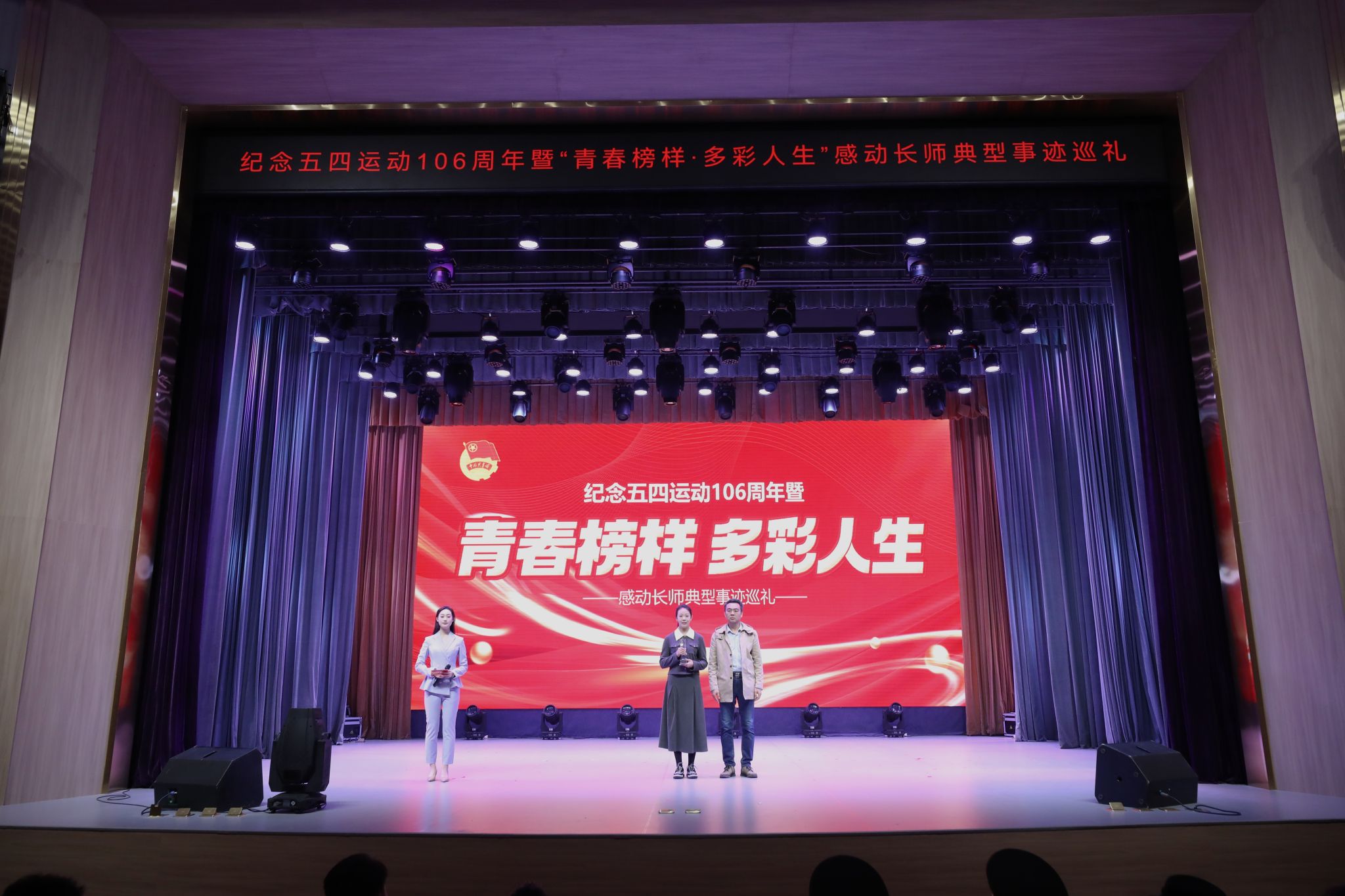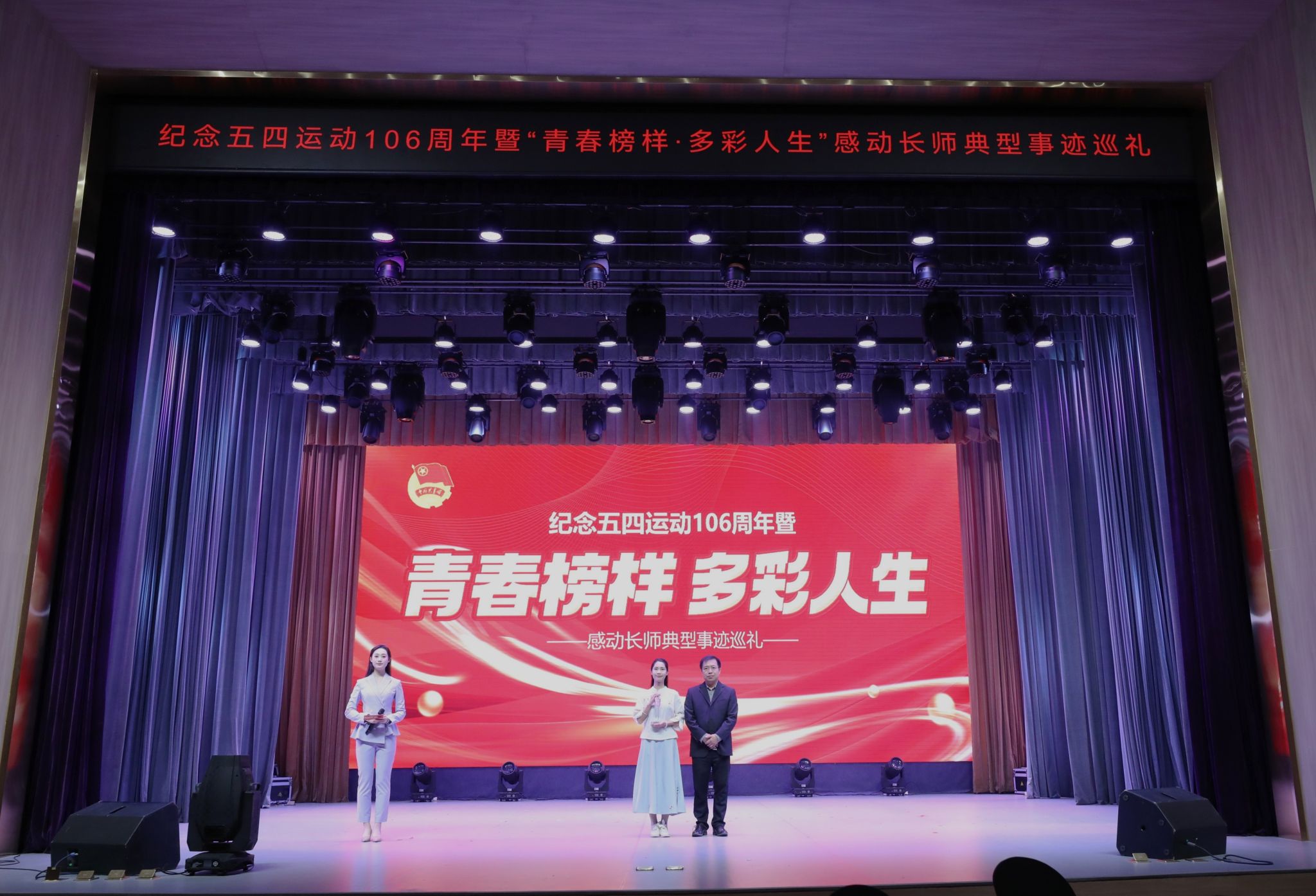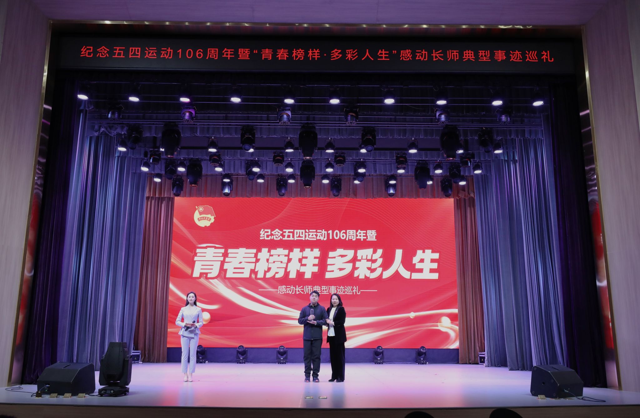 4月27日,“‘以爱之名·绽放青春’纪念五四运动106周年暨‘青春榜样·多彩人生’感动长师典型事迹巡礼”活动在长师会堂举行。