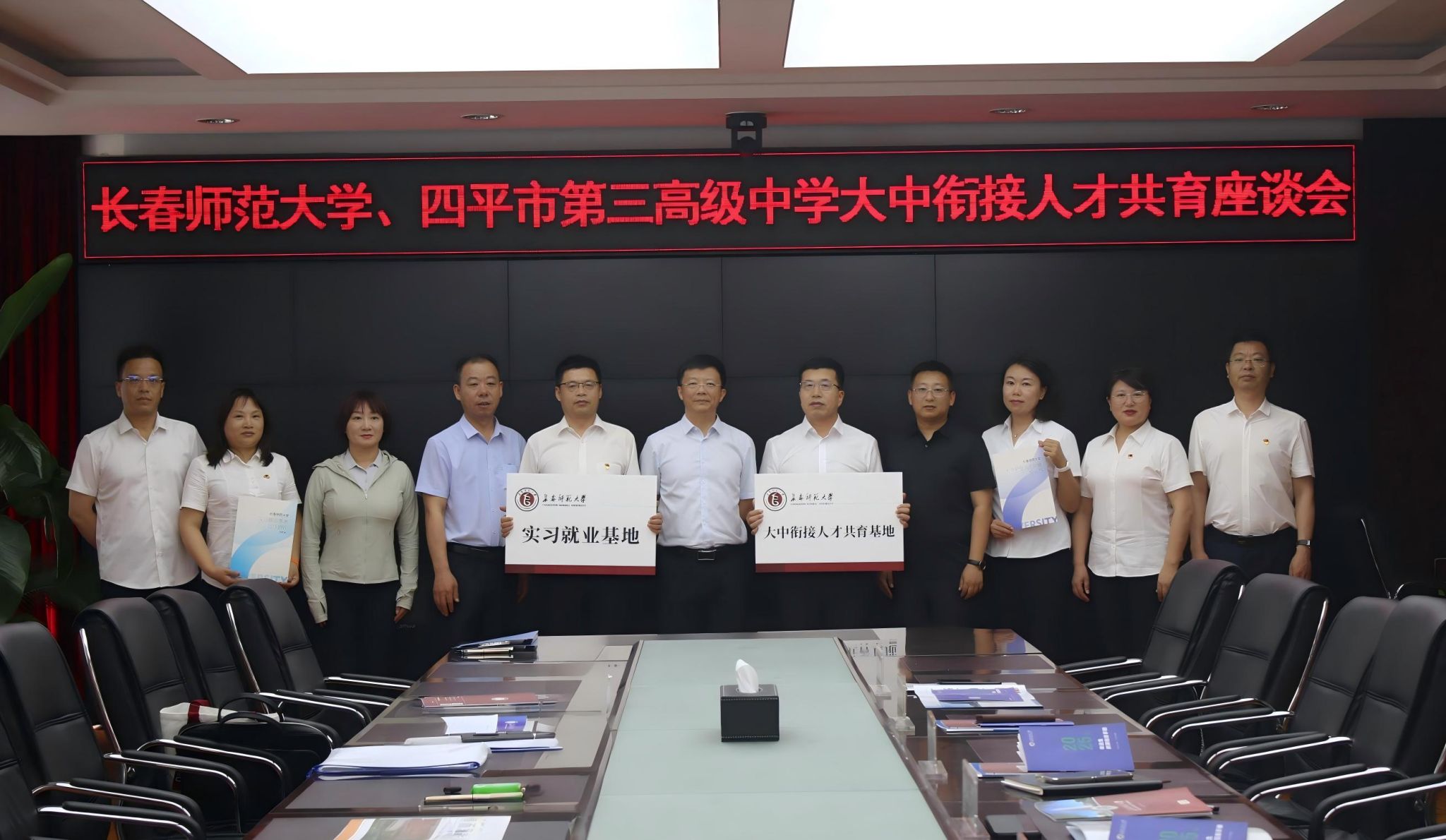 在四平市第一高级中学、四平市第三高级中学和四平市实验中学,刘鹏飞一行就大中衔接人才共育、实习就业基地建设等议题与上述单位举行交流座谈会并签署共建协议。四平市第一高级中学党委书记苏亚利、四平市第三高级中学党委书记姜艳成和四平市实验中学党委书记孙国民以及学校领导班子成员、部分高三年级班主任老师、长师校友参加座谈会。